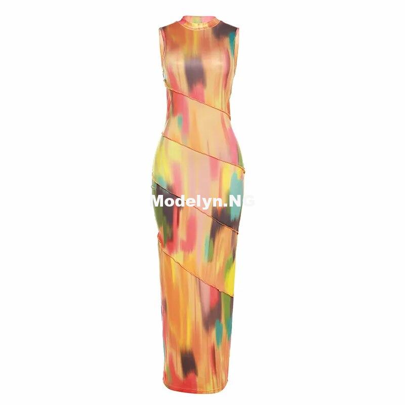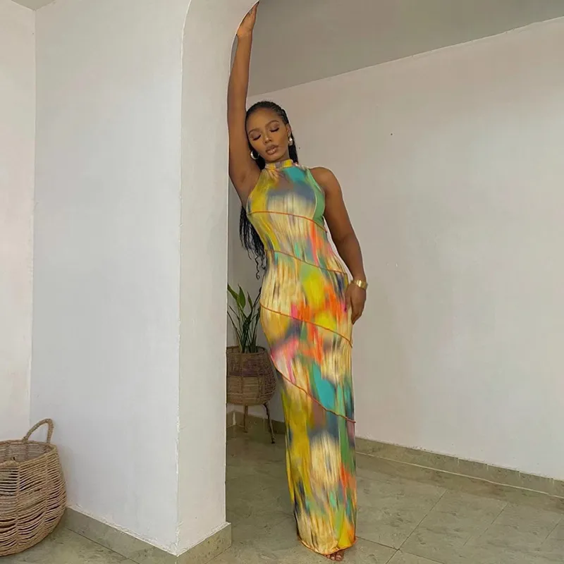 Birthday Maxi Dress For Women Sexy Tie Dye Print Sleeveless Bodycon Summer Beach Vacation Party Outfits Elegant Floral Vestidos