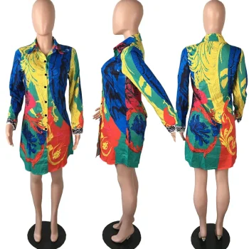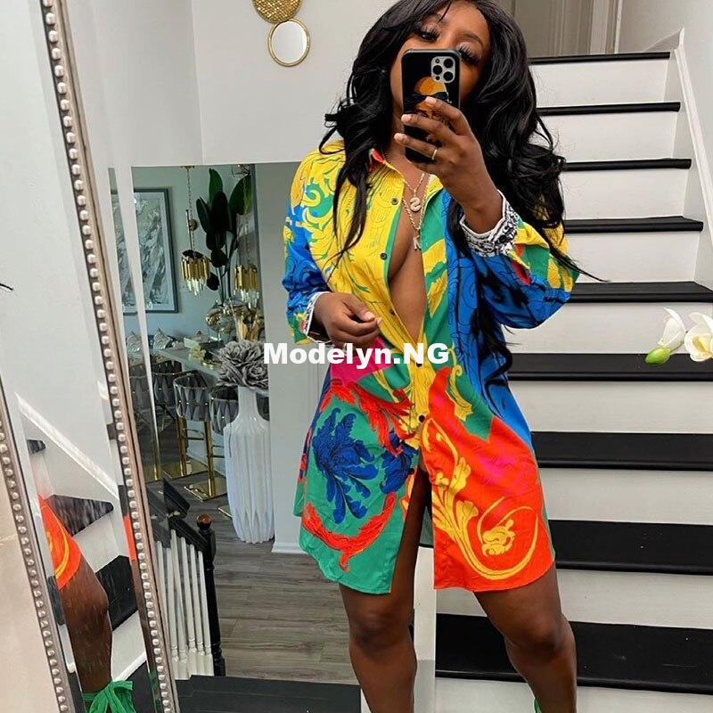 Printed Shirt Dress Women Long Sleeve Button Up Turn-down Collar Mini Dresses Laides Streetwear Party Dress VestidosPrinted Shirt Dress Women Long Sleeve Button Up Turn-down Collar Mini Dresses Laides Streetwear Party Dress Vestidos